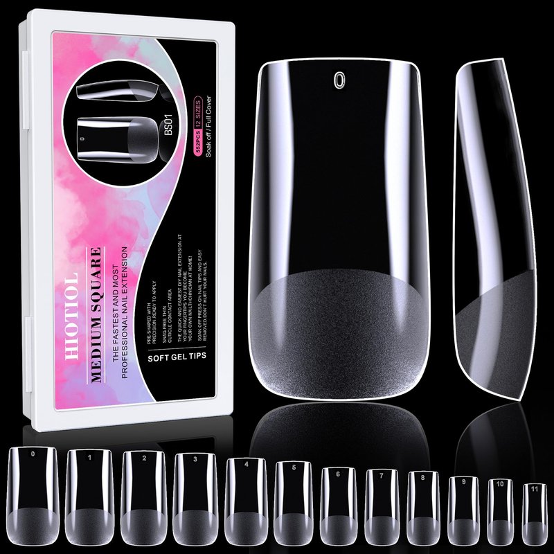 HIOTIOL Medium Square Nail Tips, 552Pcs Soft Gel Full Cover Nail Tips for Soak off Nail Extensions, Half Matte Clear False Gel Nail Tips for Nail Salons and DIY Nail Art, 12 Sizes