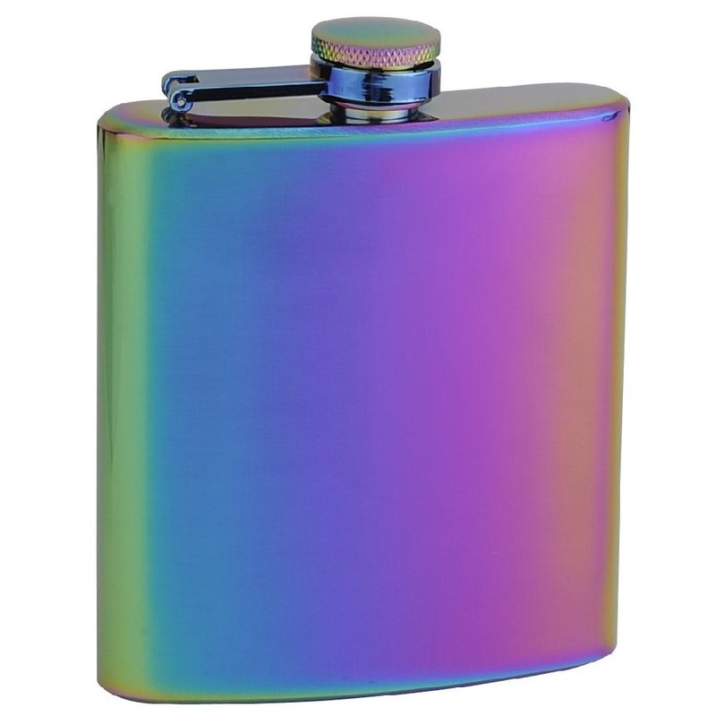 Hip Flask Holding 6 oz. - Unicorn Design - Pocket Size, Stainless Steel, Rustproof, Screw-On Cap - Rainbow Finish Perfect for Engraving - Gift Box Included
