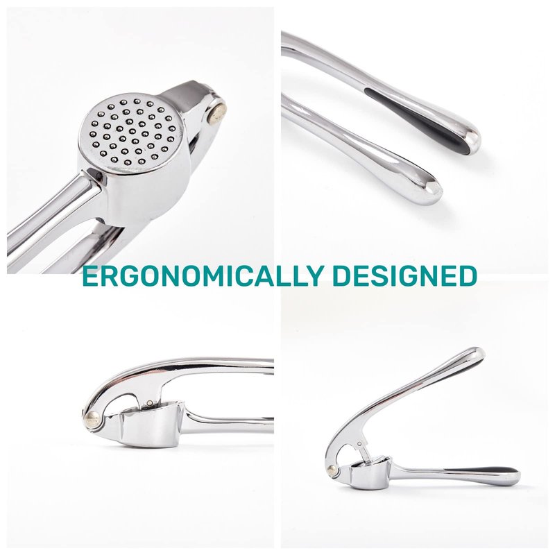 - ★ OUTSTANDING & LONG-LASTING QUALITY: This heavy duty garlic press, which will last for decades, is made of solid, high quality zinc alloy, and ergonomically designed. It’ll be your favorite kitchen gadget. It’s rust free and dishwasher safe.
