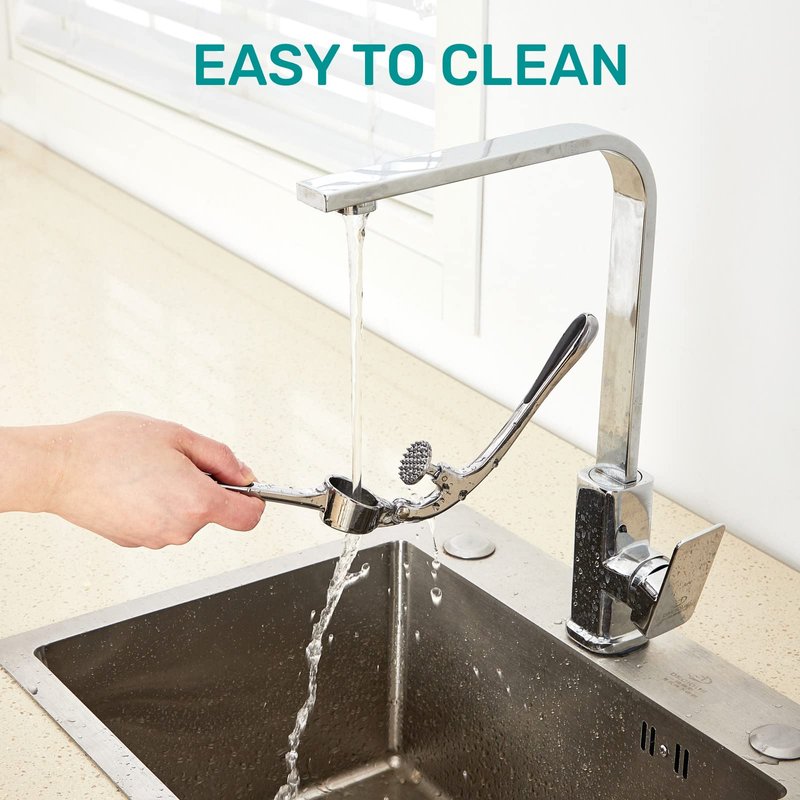 - ★ EASY TO USE & CLEAN: Easy and comfortable to grip and press. Mince peeled or unpeeled garlic in seconds and say goodbye to the stress of mincing with knives. It’s really that easy and fast, and will save lots of your preparation time and labor in the kitchen. To clean it, just put it under running water or in the dishwasher and it’ll shine again.