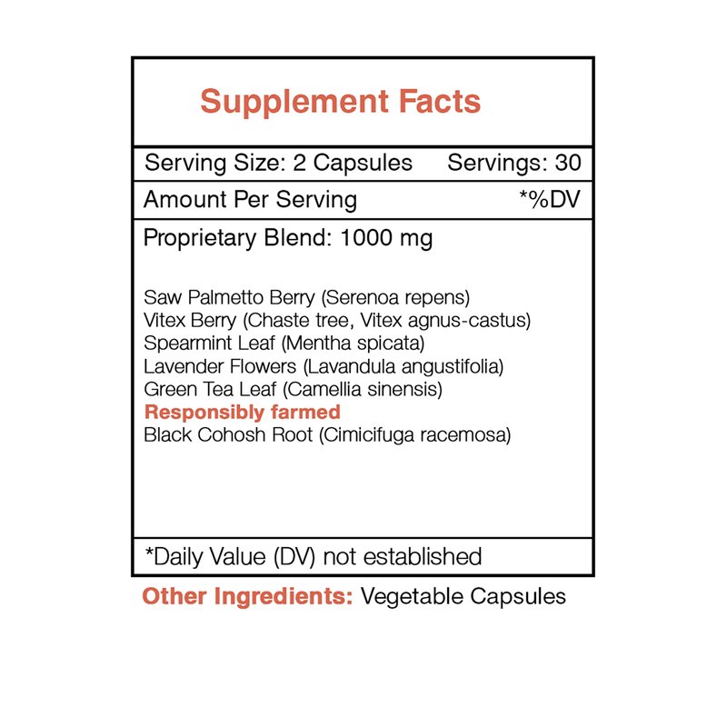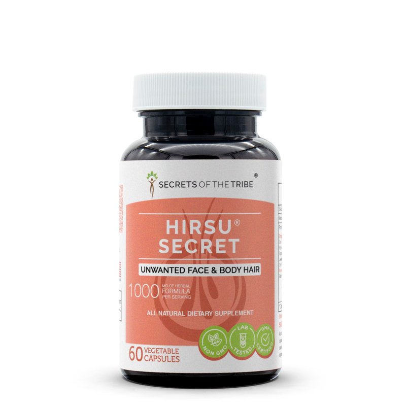 Hirsu Secret 60 Capsules, 1000 mg, Saw Palmetto, Black Cohosh, Vitex, Spearmint, Lavender, Green Tea. Unwanted Face & Body Hair (60 Capsules)