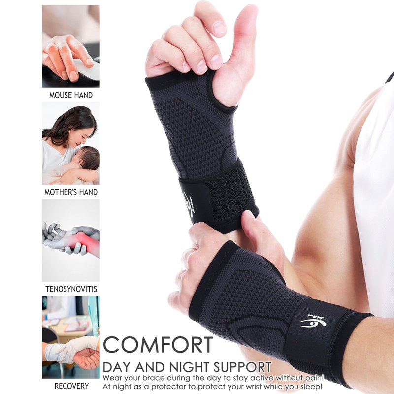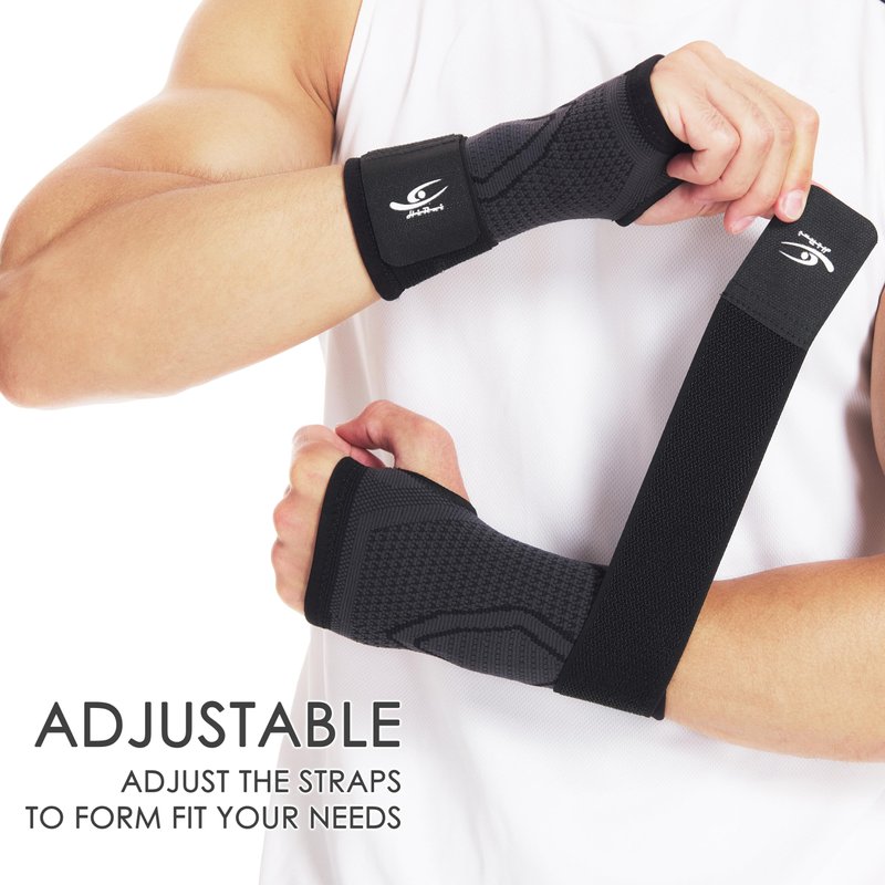 - ►COMFORTABLE TO WEAR - Premium support and ease of use. You can easily put on and adjust the strap to form fit your wrist to provide support to relieve your pain. Adjustable elastic wrist strap, you can adjust per your comfort level. The reinforced hand and wrist support provide the perfect comfort, can help reduce inflammation, swelling and soreness, promotes muscle recovery, and helps with joint pain relief during daily work or exercise.
