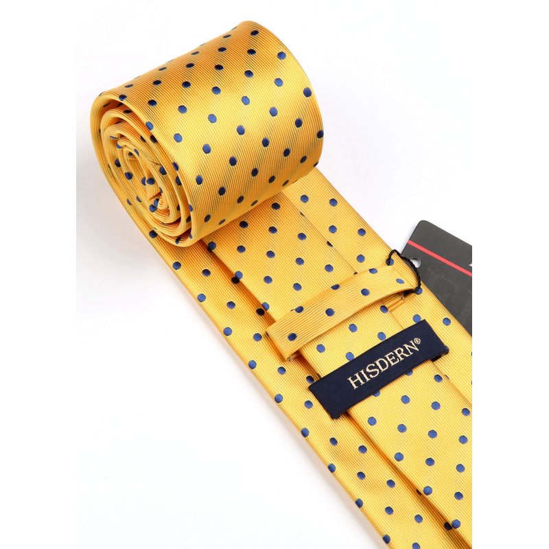 HISDERN Mens Yellow Polka Dot Ties and Pocket Square Set Woven Silk Necktie & Handkerchief for Men Business Party