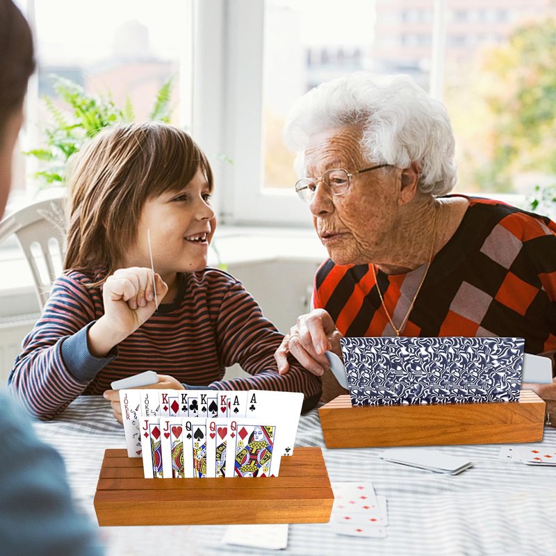 hismocal Playing Card Holders Deck Stand, Play Cards Holder for Kids or Elder People, Hands-Free Wood Holder Racks,Tray for Organizing Cards (2 Pack)