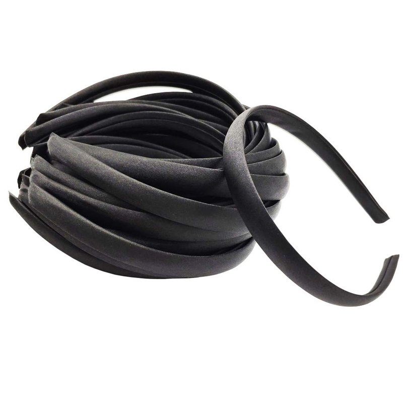Hixixi 20pcs 15mm Wide Satin Fabric Covered Ribbon Flexible Headband Hairband Hair Band For Girls Women DIY Craft (Black)