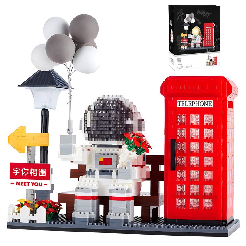 HJPLPXH Space Astronaut Micro Mini Building Block Set with Led Lighting Telephone Booth Kit Pen Holder Gifts for Adults and Kids (2188 Pieces)