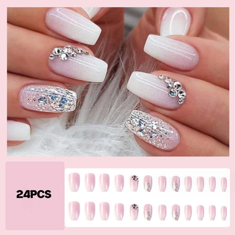 Hkanlre Bling Coffin Press on Nails Fake Nails Tips Full Cover Medium False Gradient Nails for Women and Girls 24PCS (Bling Coffin)