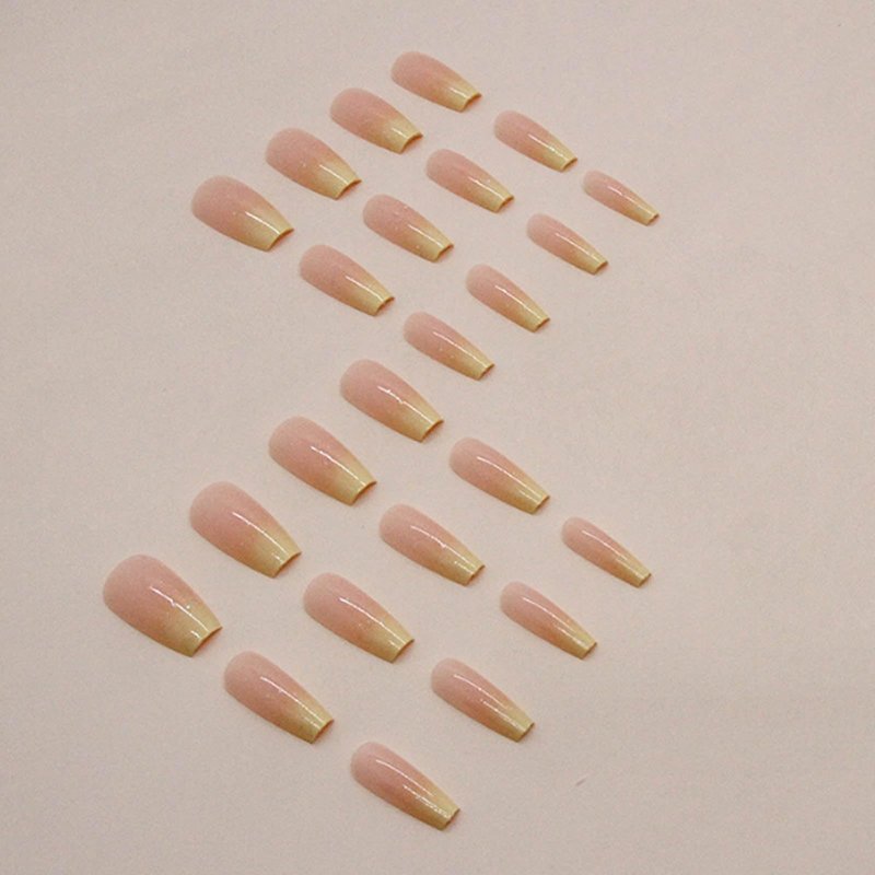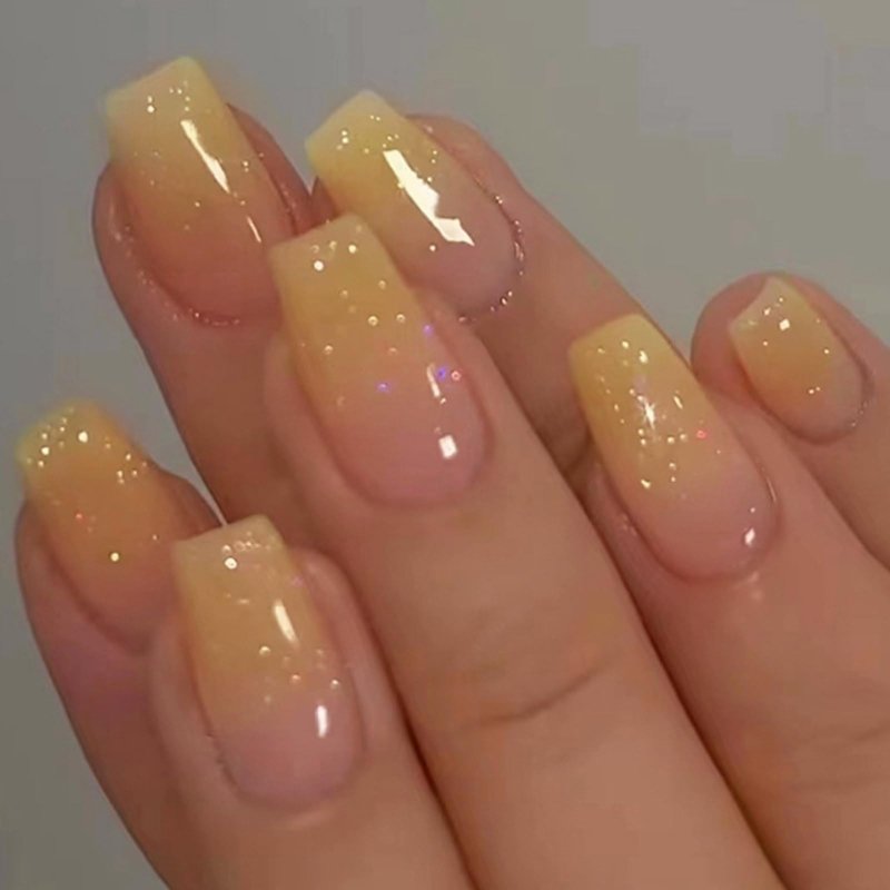 Hkanlre Bling Coffin Press on Nails Fake Nails Tips Full Cover Medium False Gradient Nails for Women and Girls 24PCS (Yellow Coffin)