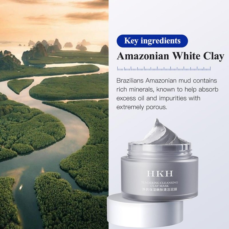 HKH Tendering Cleansing Clay Mask,Amazonian White Mud Mask,Moisturizing and Nourishing Facial Mask with Deep Cleansing &Pore Purifying, 4 oz