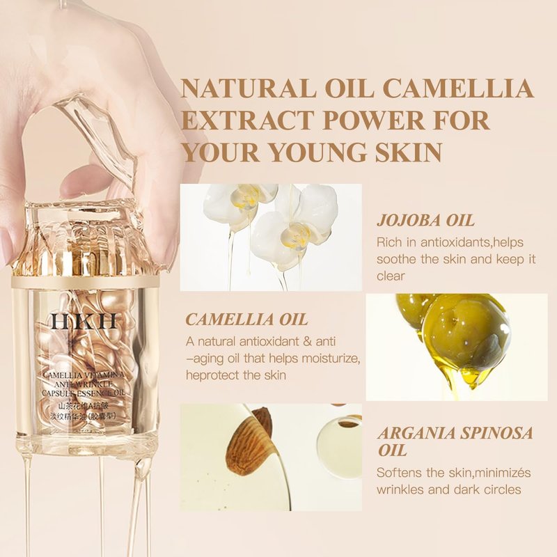 HKH Triple Retinol Anti-Aging Capsules Serum for Face, Stocking Stuffers Camellia,Niacinamide,Anti-Wrinkle Vitamin C For Women To Tighten Sagging Skin,Reduce Fine Lines Essential moisturizing essence