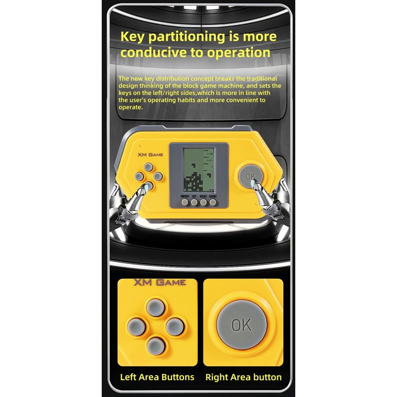 - ★★Key partitioning is more conducive to operation★★The new key distribution concept breaks the traditional design thinking of the block game machine, and sets the keys on the left/right sides, which is more in line with the user's operating habits and more convenient to operate.