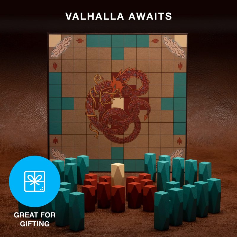 - Fit For a Thane - Our Hnefatafl set features 37 beautiful faceted wood pieces, and the game board is fully hand illustrated. Measuring 10.5 inches square and featuring art of the famed and feared World Serpent, the single-piece game board doesn't require a fold, which creates a perfectly smooth play surface with no crease