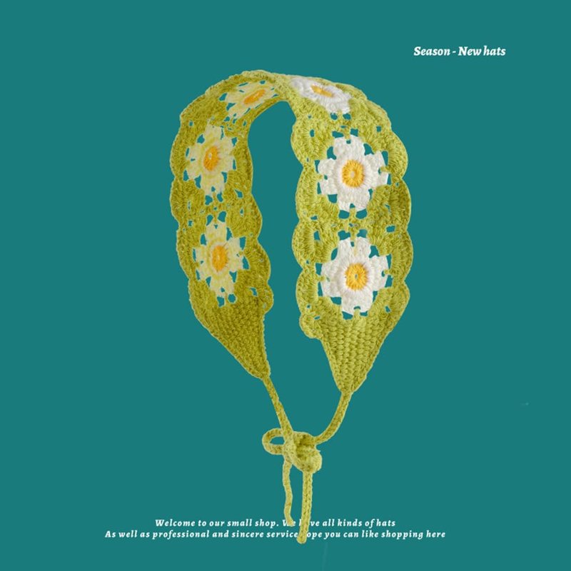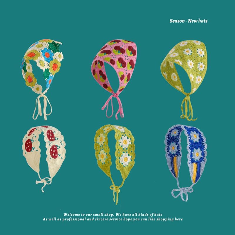 Hofar Crochet Bandana Headbands Y2k Aesthetic Accessories Knitted Head Wrap Handmade Vintage Hair Bandanas Cute Creative Hair Accessories