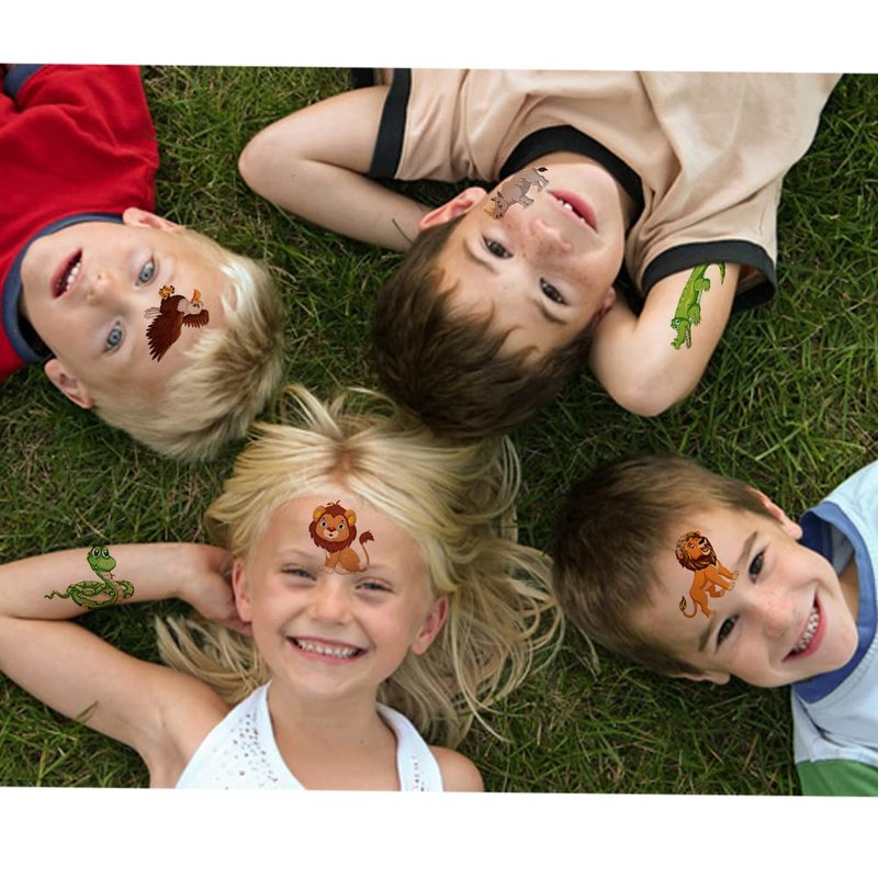 - 🎁【Value Animal Party Accessory】Popular hit with the kids. These temporary tattoos are perfect for a party! You can choose the pattern you like and create your own style. Great for birthday parties, baby shower, kids zoo animal theme party, jungle parties, children's day party gifts, Halloween, Christmas stockings, classroom rewards, etc.You can apply them to your body or some smooth objects, for example, glass, stationery, paper,crafts cups,cabinet,bottle.