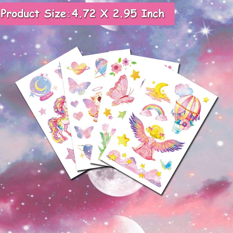 Features: Glitter Butterfly Unicorn Mermaid Ice Cream Temporary Tattoos for Girls Kids
