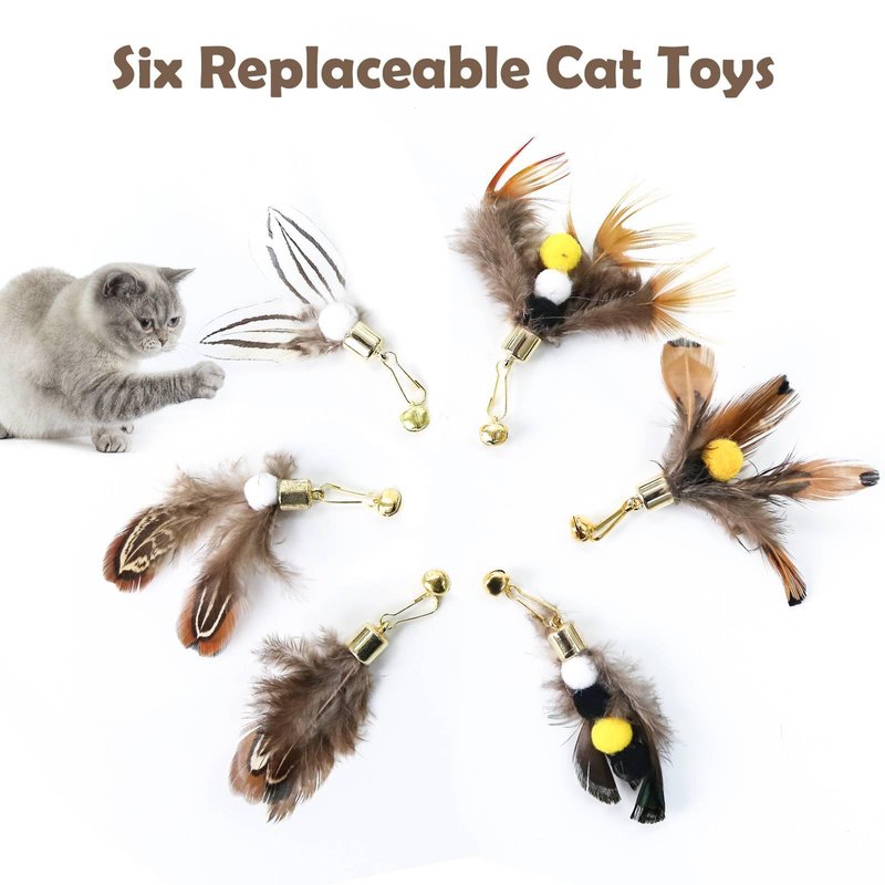 - Excellent Cat Toys Refills: Including 6 PCS insect feather replacement (Does Not Include Wands), available in 6 different style. This cat feather toy come with tinkle bell with rustling sound, it is easy to catch your cats attention.