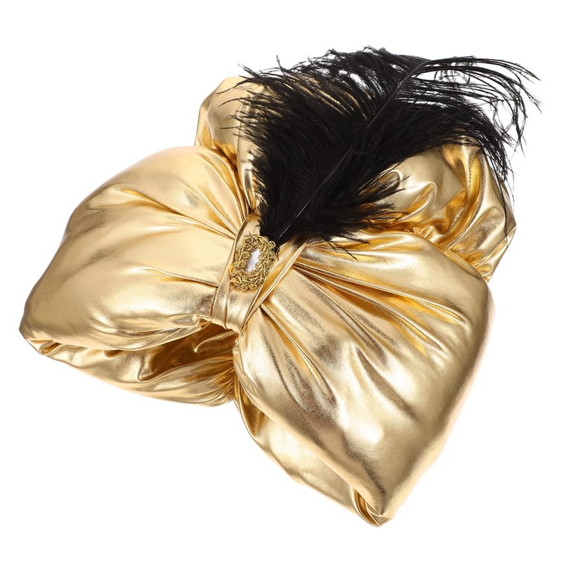 Holibanna Arab India Hat Golden Turban Hat Prince Headdress Costume Arabian Cap Plume Decor Arabic Headwrap for Men Women Cosplay Fancy Dress