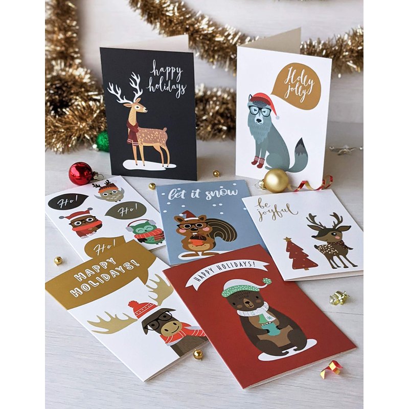 Holiday Greeting Cards with Envelopes and Stickers - Pack of 50 Merry Christmas Notes – 10 Unique Woodland Animals designs, Thick Cardstock, 4X6 Inch in a Sturdy Box, Blank Inside' (Mix)
