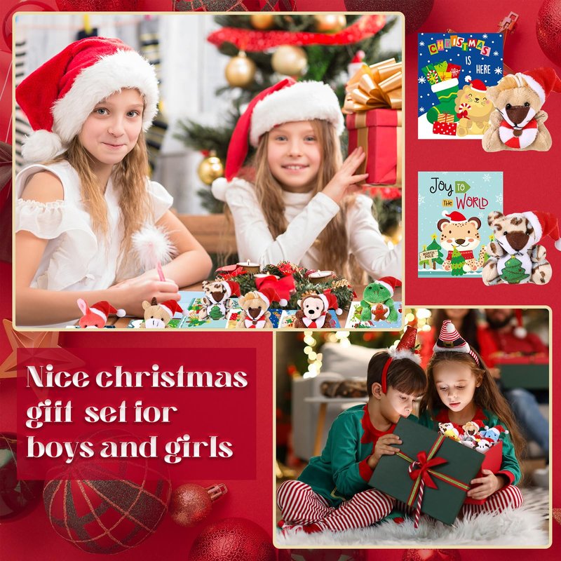 Hollowfly 15 Sets Christmas Mini Stuffed Animals with Xmas Cards Christmas Soft Plush Toy with Christmas Hat for Xmas Party Favors Christmas Tree Decor Stocking Fillers Classroom Gifts Exchage