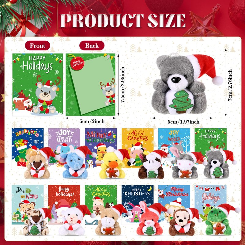 - Charming Christmas Set: experience the complete celebration feeling with our Christmas set, which includes 15 Christmas cards and 15 small Christmas stuffed animals, the combination of these two allows for a variety of fun activities