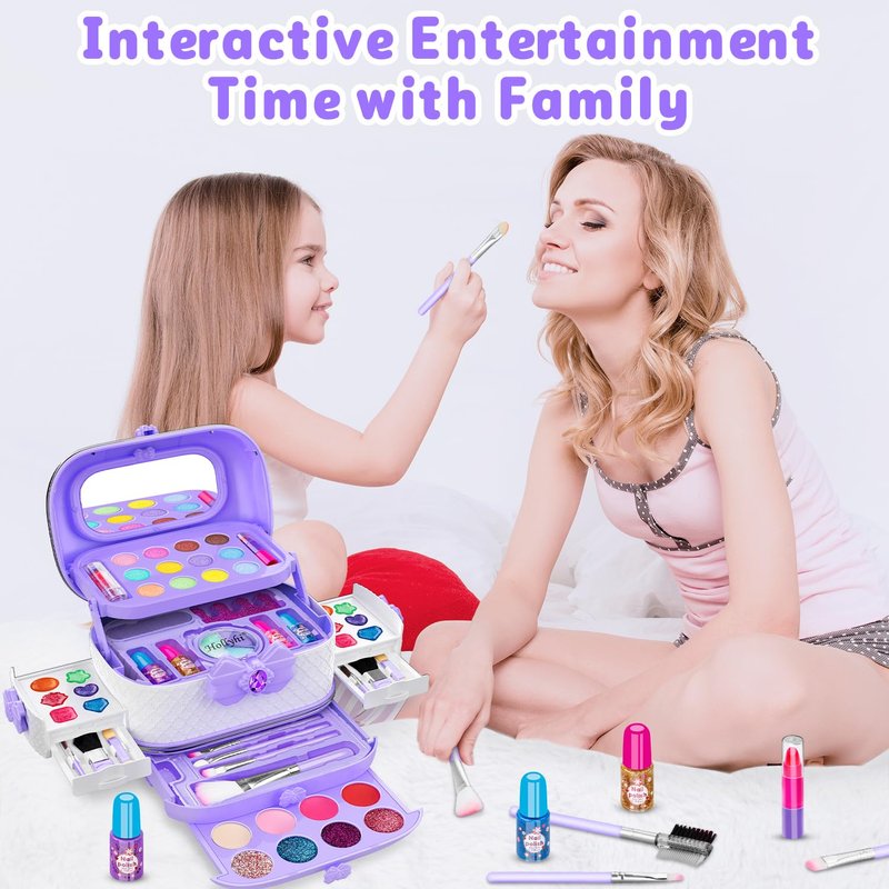 Hollyhi 58 Pcs Kids Makeup Kit for Girl, Princess Toys Real Washable Cosmetic Set with Mirror, Kids Makeup Sets for Girls, Play Make Up Birthday Gifts for 3 4 5 6 7 8 9 10 11 12 Years Old Kid(Purple)