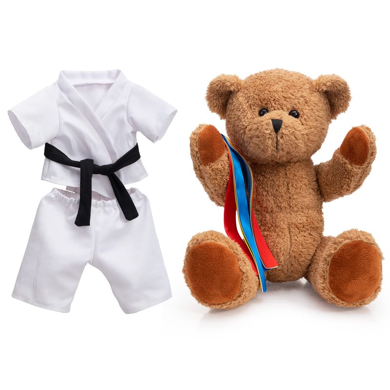 - Adorable teddy bear in this Karate uniform becomes a black belt in karate with 5 other belts on hands