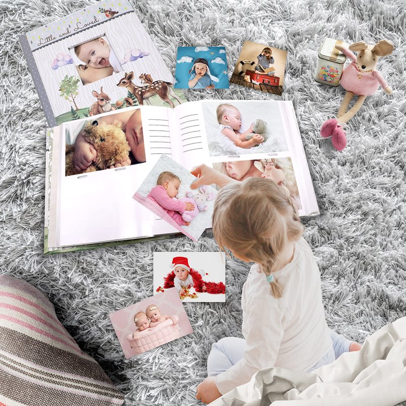 Size: 8.5”W x 8.6”H x 1.5”D. Display favorite 3” x 3” photo of your little and loved one on the front photo frame window allows you to turn this photo album book into a personalized keepsake. Inside: Includes 40 sheets/80 pages of acid free page, each page holds two photos of 4 x 6 inches, memo writing space to write a note or memory next to each pocket, total holds 160 photos of 4” x 6” picture. Design: Woodland theme design with cute forest animals and elements for baby shower welcome party. slip-in high transparent PP pocket for horizontal or vertical photos, easy to record all of your baby’s precious moments. Perfect Gift: This cute woodland animals picture album is a great baby shower present to baby birthday party and to give anyone expecting a little one, best holiday Christmas gift for new parents. Keep Memories Forever: Hard cover and sturdy book binding, archival, photo safe acid free pages that will last for a long time, Store your babies first five years memories to keep with you forever, It’s a treasured keepsake for families.