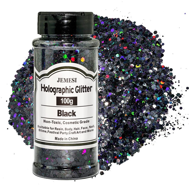 Holographic Chunky Glitter, 100g Black Cosmetic Craft Glitter for Epoxy Resin, Nail Sequins Iridescent Flakes, Body, Face, Hair, Nail, Glitter Slime Making
