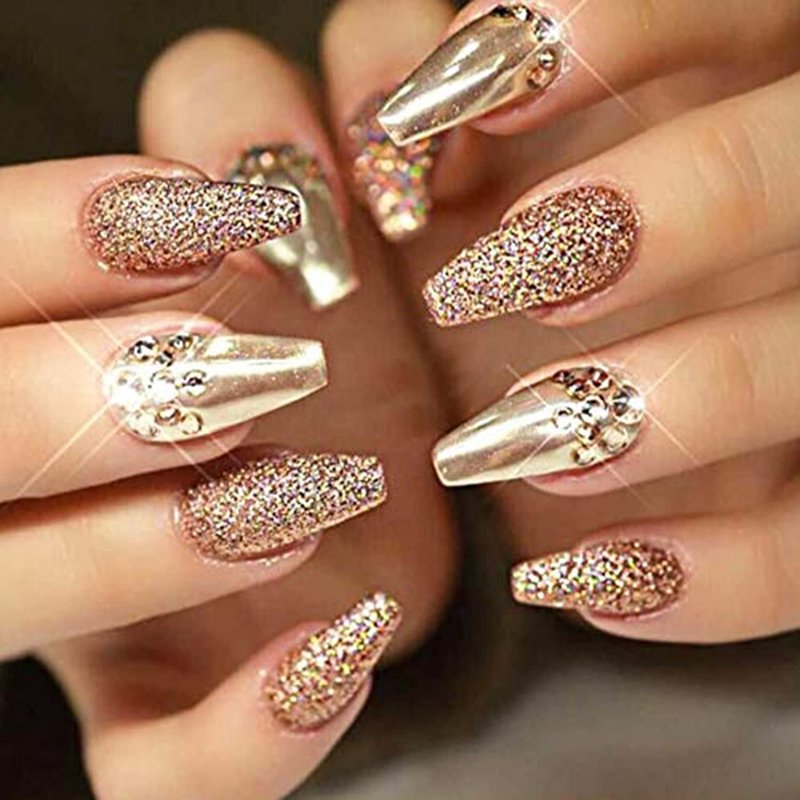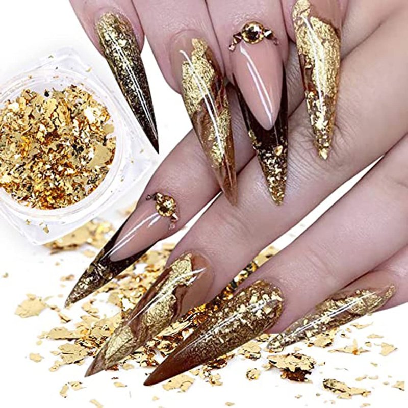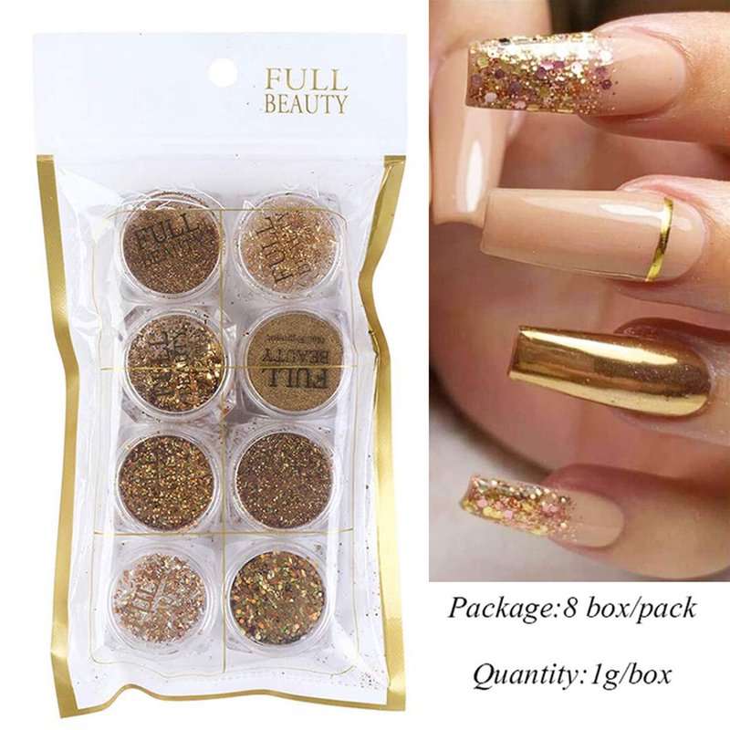 - Package: 8 Designs gold acrylic nails decorations, multiple designs have more options to create your own nail art, including nail foil, nail powder, nail rhinestones, nail strips etc.