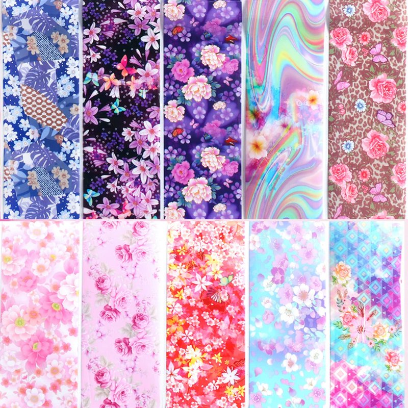 - 【Nail Art Design】10 Sheets colorful flower nail art stickers transfer foil, contains a variety of patterns, the size of each sheet is approx 7.8 x 1.5 inch. The designer uses a large number of large flowers and small flowers combined with pink, purple, blue, and rainbow elements to create a flower sea of nails. These nail stickers are perfect for matching other nail art.