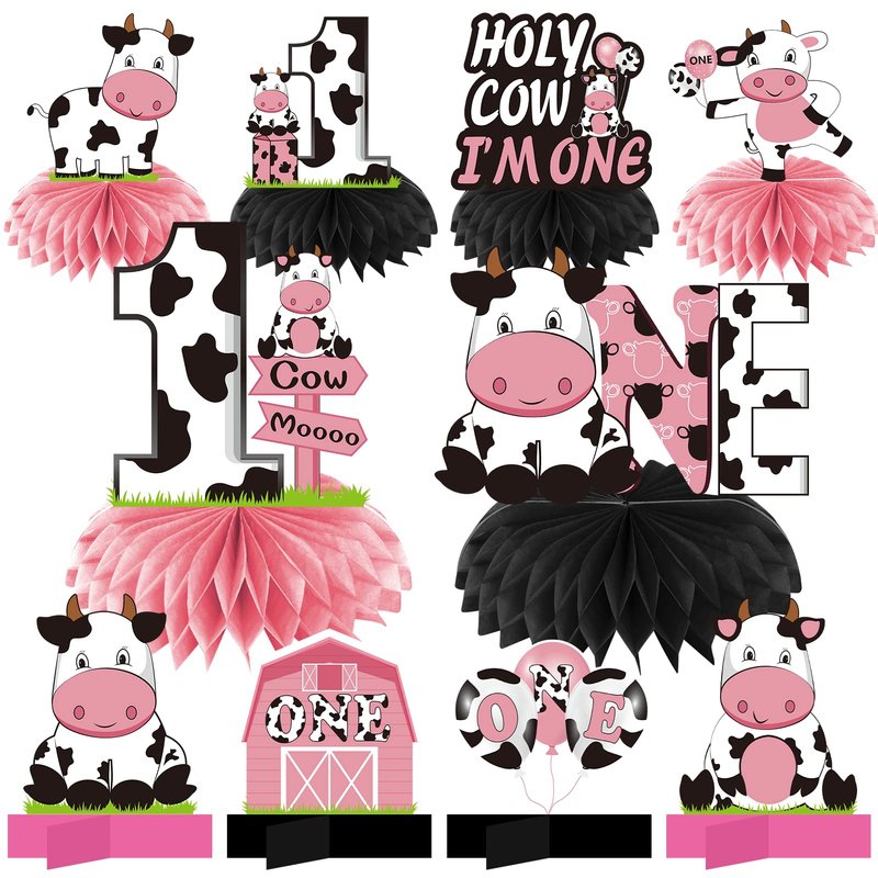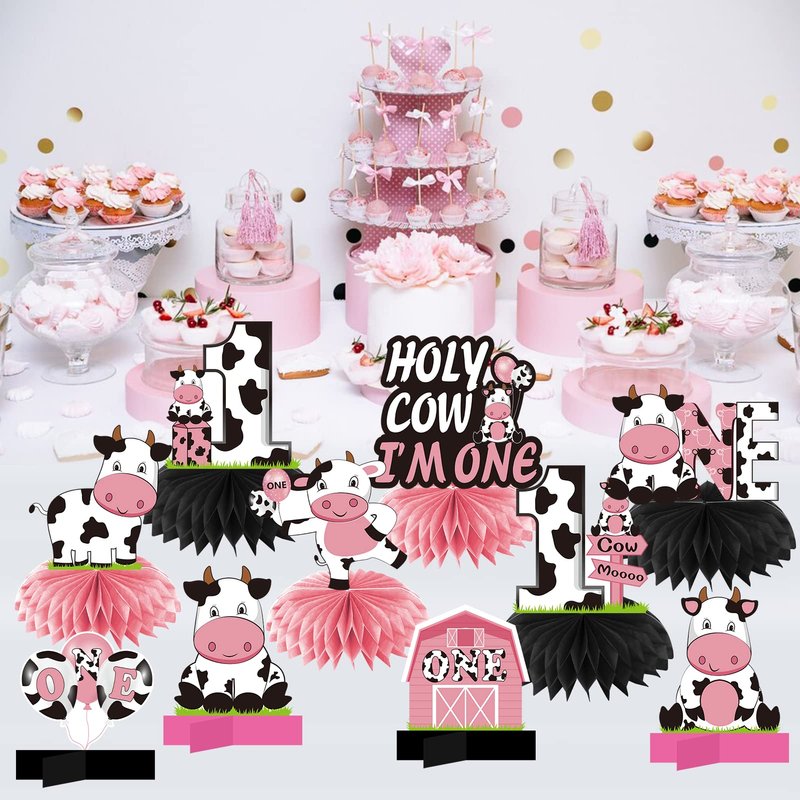 - [Cute Design] - These holy cow i'm one birthday honeycomb centerpieces decorations incorporate cute pink cow elements into your 1st birthday party event, the sweet cow pattern design will make your 1 year old baby girl's birthday party more warm and happiness.