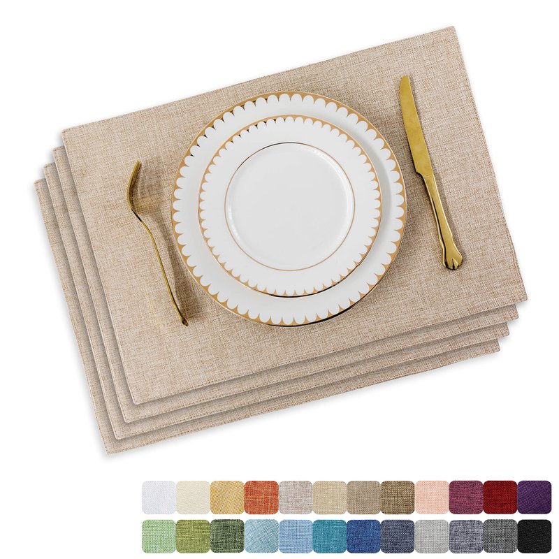 Home Brilliant Placemats Set of 4 Heat Resistant Dining Table Place Mats Plate Mat Cloth Placemats Spring Kitchen Table Mats Indoor Outdoor, Light Linen