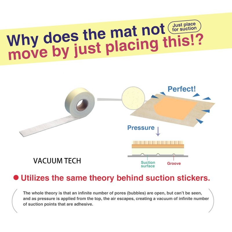 - ★Design Feature. This product can easily be glued under any rug. The side facing the floor features tiny suction pores. These pores utilize the VACUUM TECH feature in which whenever pressure is applied from the top, air escapes and creates a low-pressure region within the cups. This produces an adhesive effect, which keeps your rug in place. Does Not Work For Rugs On Carpet Floors.