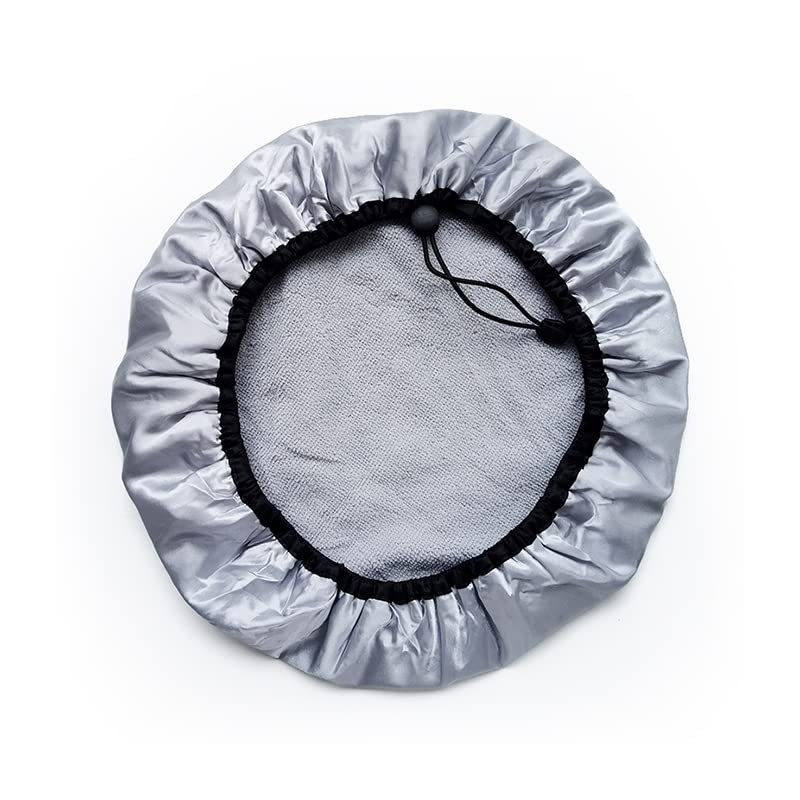 - The outer layer of the shower cap is made of soft satin fabric. The middle layer is waterproof EVA. The inner layer is terry cloth. The triple layer design keeps your hair dry when you enjoy a shower.