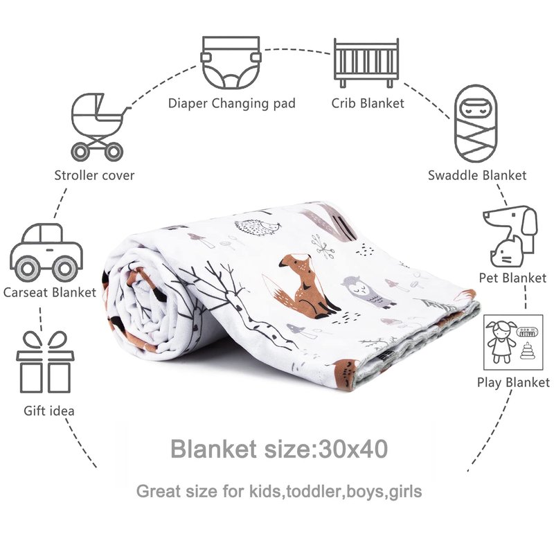 - VERSATILE USAGE SCENARIOS: This baby blanket for girls and boys comes in 30”x40” is perfect for sleeping, stroller cover, nursing cover, burp Cloth. Also great for fur babies or adults, cover your legs in office、living room or traveling outside with the perfect finishing touch
