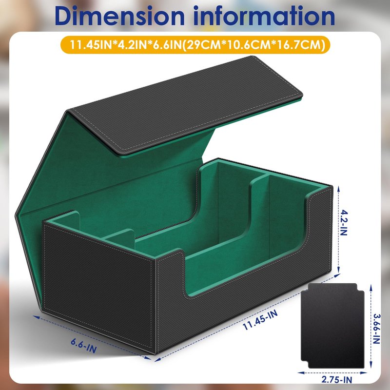 - Holds 1200+ Sleeved Cards: the size of our deck card case is 11.45x7x4.2 inches, it's large enough to store 1200+ standard size trading game cards easily. Does NOT fit Toploaders sleeves. SURPRISE GIFT!!! Comes with 4 card dividers!