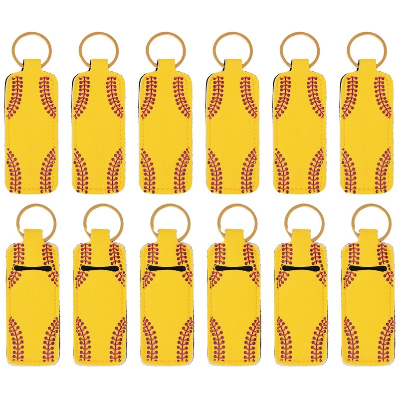 Honbay 12PCS Softball Pattern Chapstick Holder Keychain Lip Balm Holder Lipgloss Holder Lipstick Holder Clip-on Sleeve Pouch for Travle or Daily Outing for Handbags Backpacks