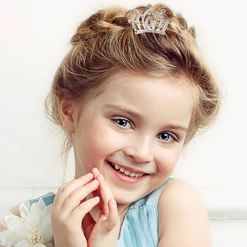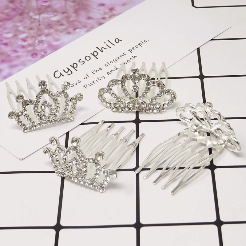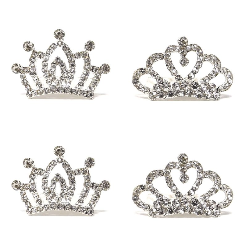 Honbay 4PCS Mini Crystal Rhinestone Crown Hair Comb Princess Tiara Comb, 1.7x1.5x0.9inch