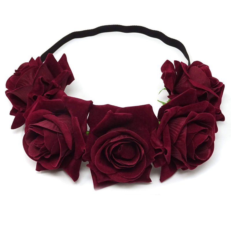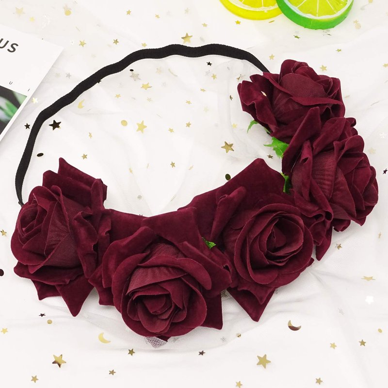 Honbay 7cm/2.76inch Rose Flower Crown Elastic Headband Hair Band Festival Hair Garland Wedding Headpieces (Red Wine)