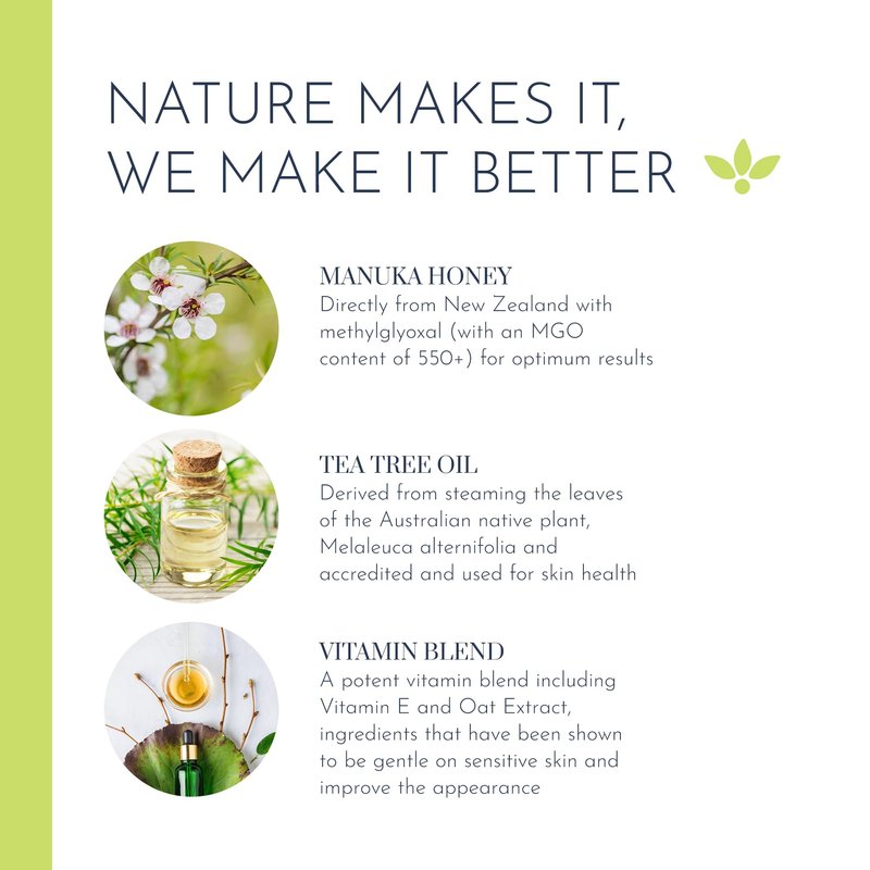 - SUPERCHARGED MANUKA HONEY: Crafted by a board-certified physician and leading scientific researcher, our Skin Balm features authenticated Manuka Honey (550+ MGO) from Bee’s and Tree’s farms in New Zealand. Enriched with Tea Tree Oil, a proprietary vitamin blend, and laboratory-tested for enhanced properties.