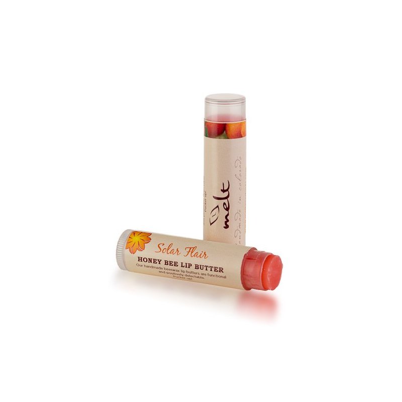 Service your own delicate lips with the delectable and functional MELT HONEY BEE LIP BUTTER. Packed with skin softening oils and butters, this natural hand made product will make you (or perhaps someone else) want to lick your lips all day! INGREDIENTS: beeswax, mango butter, almond oil, grape seed oil, virgin coconut oil, cocoa butter, shea butter, olive oil, jojoba oil, castor oil, orange oil, vitamin E., FD&C colorant.