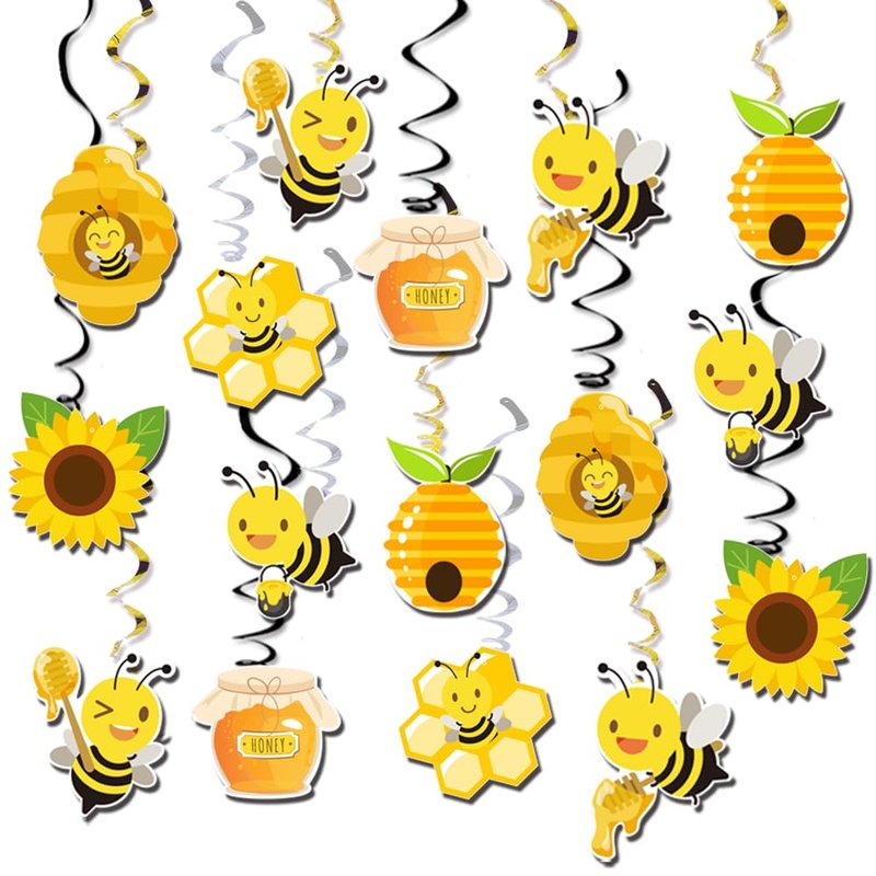- Sweet Honey Bee Themed Party Decorations - Our happy bee day party decorations designed with super cute bee hanging swirls, which creates vintage feel to your Bee Themed Party. The honey bees, honeycombs, and sunflowers with matching streamers will also make your guest unforgettable. The best service only be provided by Aqiku