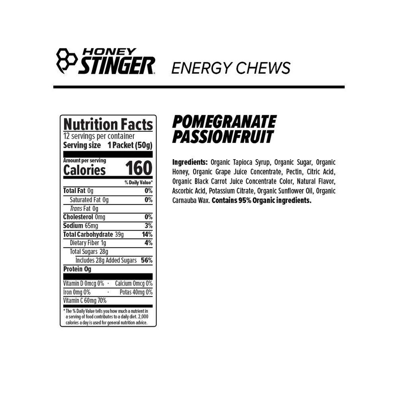 Honey Stinger Organic Energy Chews, Pomegranate Passionfruit, Sports Nutrition, 1.8 Ounce (Pack of 12)