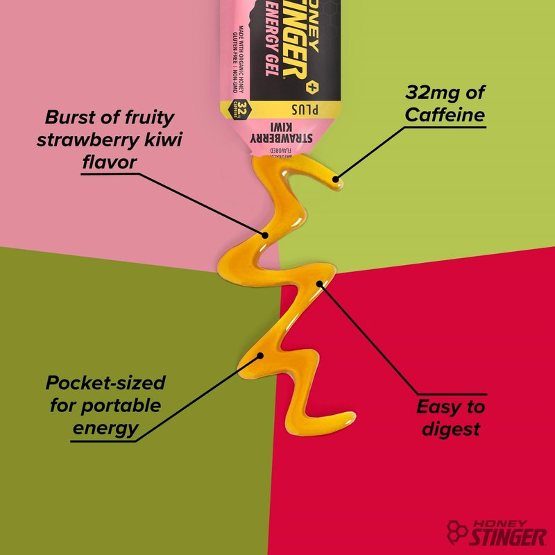 Honey Stinger Strawberry Kiwi Energy Gel | Caffeinated & Gluten Free with Organic Honey | For Exercise, Running and Performance | Sports Nutrition for Home & Gym, Pre and Mid Workout | 24 Pack