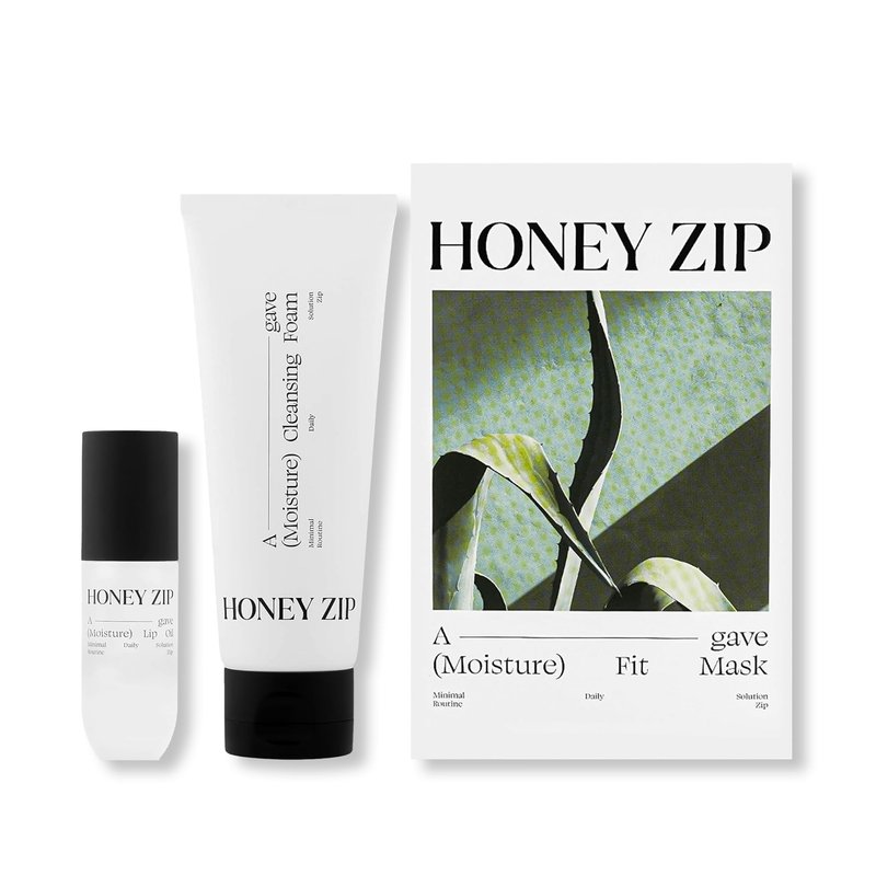 Honey Zip Skincare Set, Agave Moisture Fit Sheet Mask 10 packs, Lip Oil, Cleansing Foam, Korean Beauty Skin Care, Hydrating, Anti-Aging, Cleanser