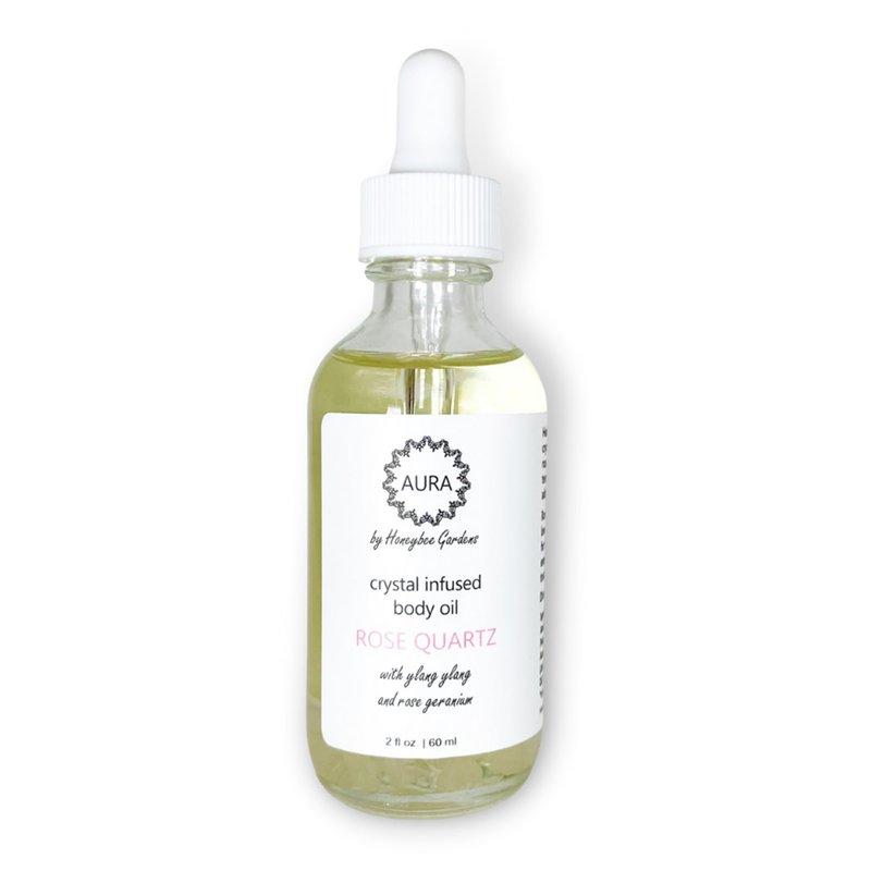 Honeybee Gardens Crystal Infused Body Oil, Rose Quartz, Organic, Moisturizing, Non-Greasy, for All Skin Types, 2 Fl Oz