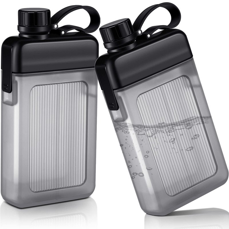 - Exquisite Design: the plastic flask water bottle is tethered with a strap on the top, which can lock the flask lid in place for a leak proof design, removable lid also allows you to fill and clean it easier, enough for your body to keep hydrated, sleek and compact design, you can take it anywhere