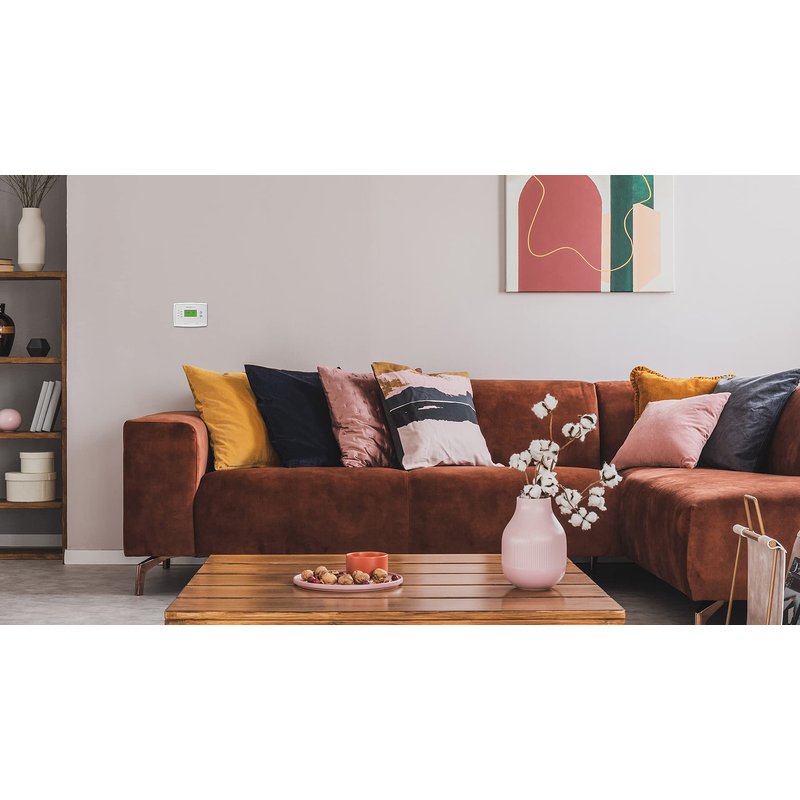 - 7 DAY PROGRAMMING: Separate programs for each day of the week with 4 program periods per day including wake, leave, arrive and sleep.