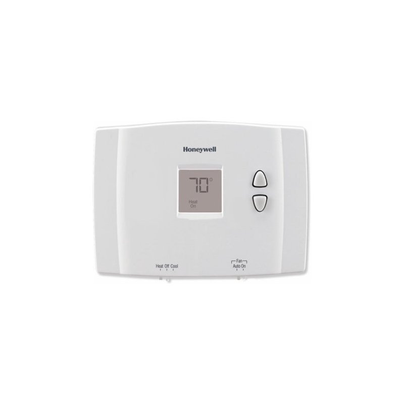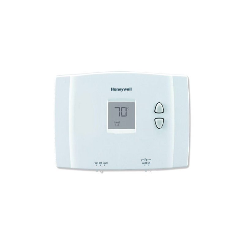 The Honeywell Horizontal Digital Non-Programmable Thermostat provides simple control over your heating and cooling system. Simply set your preferred temperature on an easily accessible and user friendly interface. Advanced temperature monitoring minimizes temperature swings and ensures absolute comfort. In the event of a power outage, the RTH111B will also remember your previous temperature settings. This thermostat features a broad compatibility range that covers: single-stage heating/cooling systems, heating, cooling, heat pumps without backup heat, mill volt, pellet stoves and fireplaces.