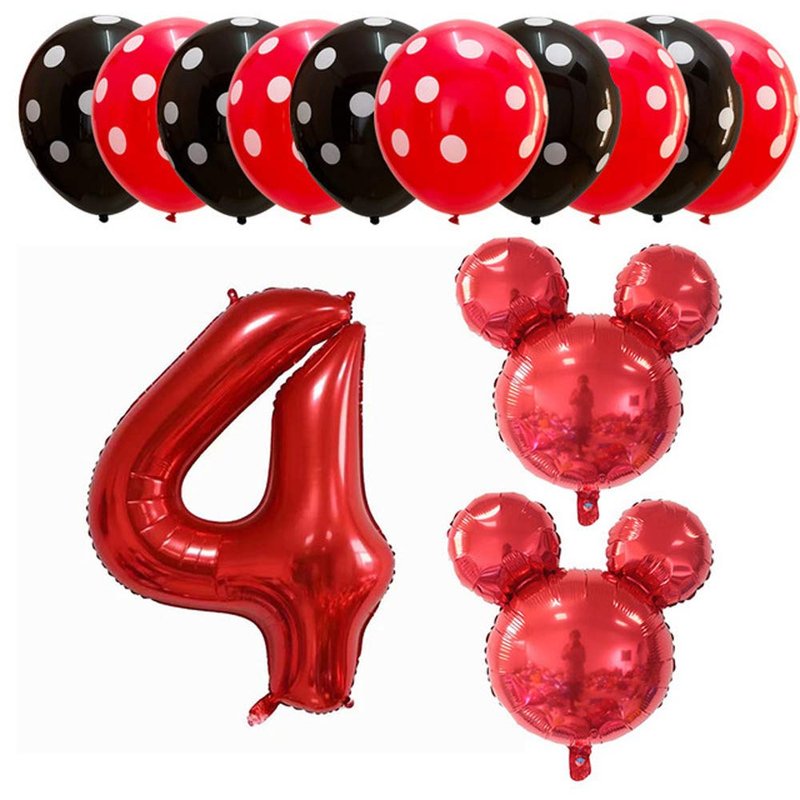 - Package Includes: 1*32" number 4 foil balloons, 2pcs big mouse head foil balloons, 10pcs 12" point latex balloons.